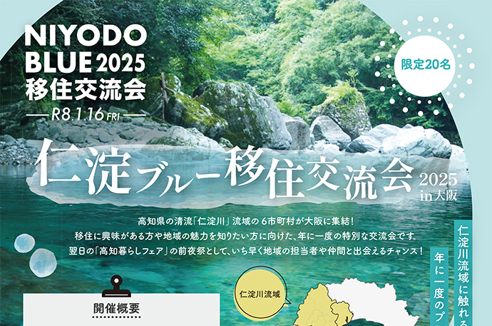 高知県の清流「仁淀川」流域の6市町村が大阪に集結!移住に興味がある方や地域の魅力を知りたい方に向けた、年に一度の特別な交流会です。