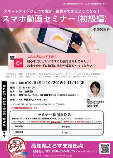 高知県よろず支援拠点 TEL:088-846-0175 FAX:088-855-3776 E-mail:yorozu@joho-kochi.or.jp |