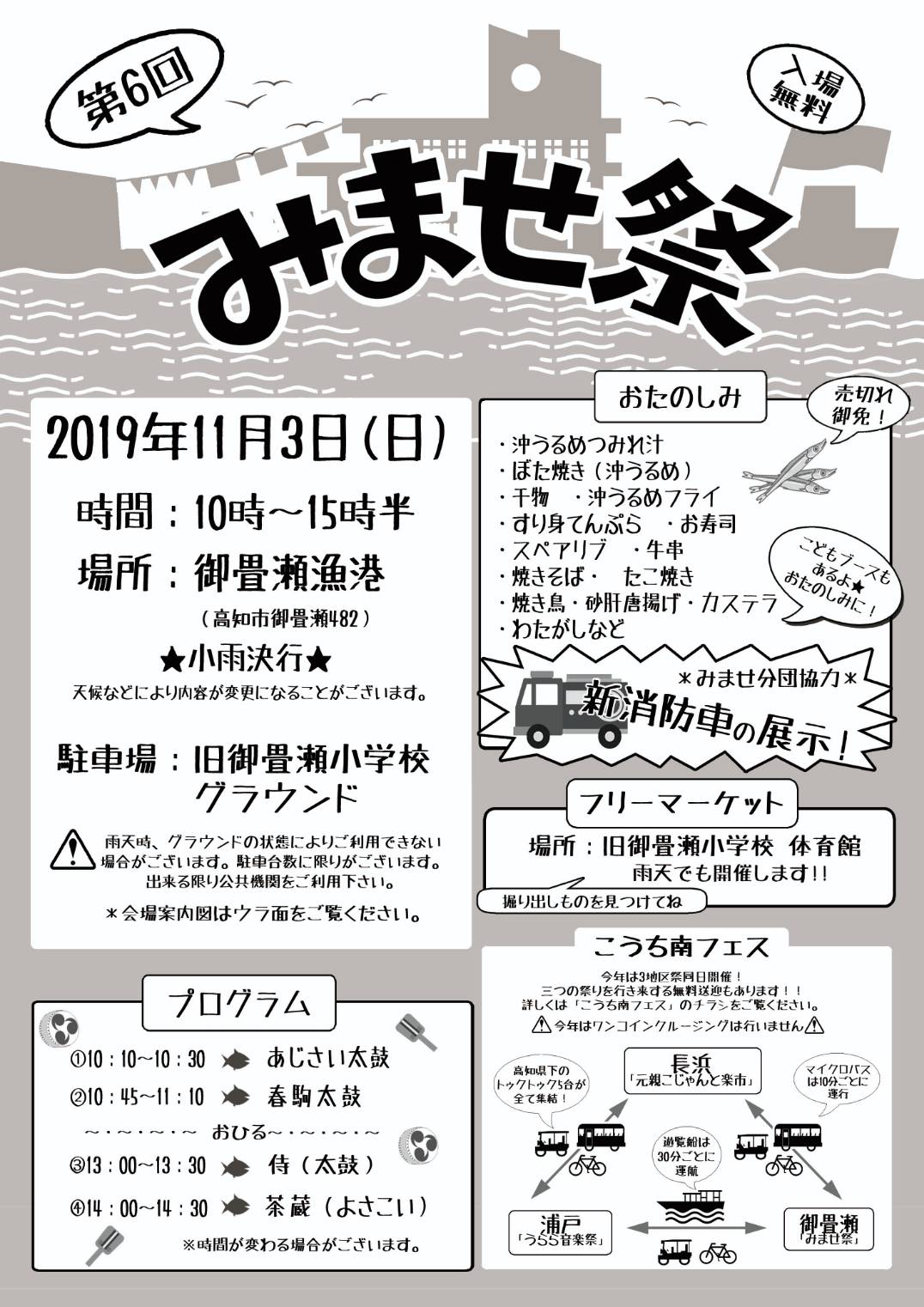 | 主催 | 元親こじゃんと楽市実行委員会 | みませ祭実行委員会 | うらら音楽祭実行委員会 | |||