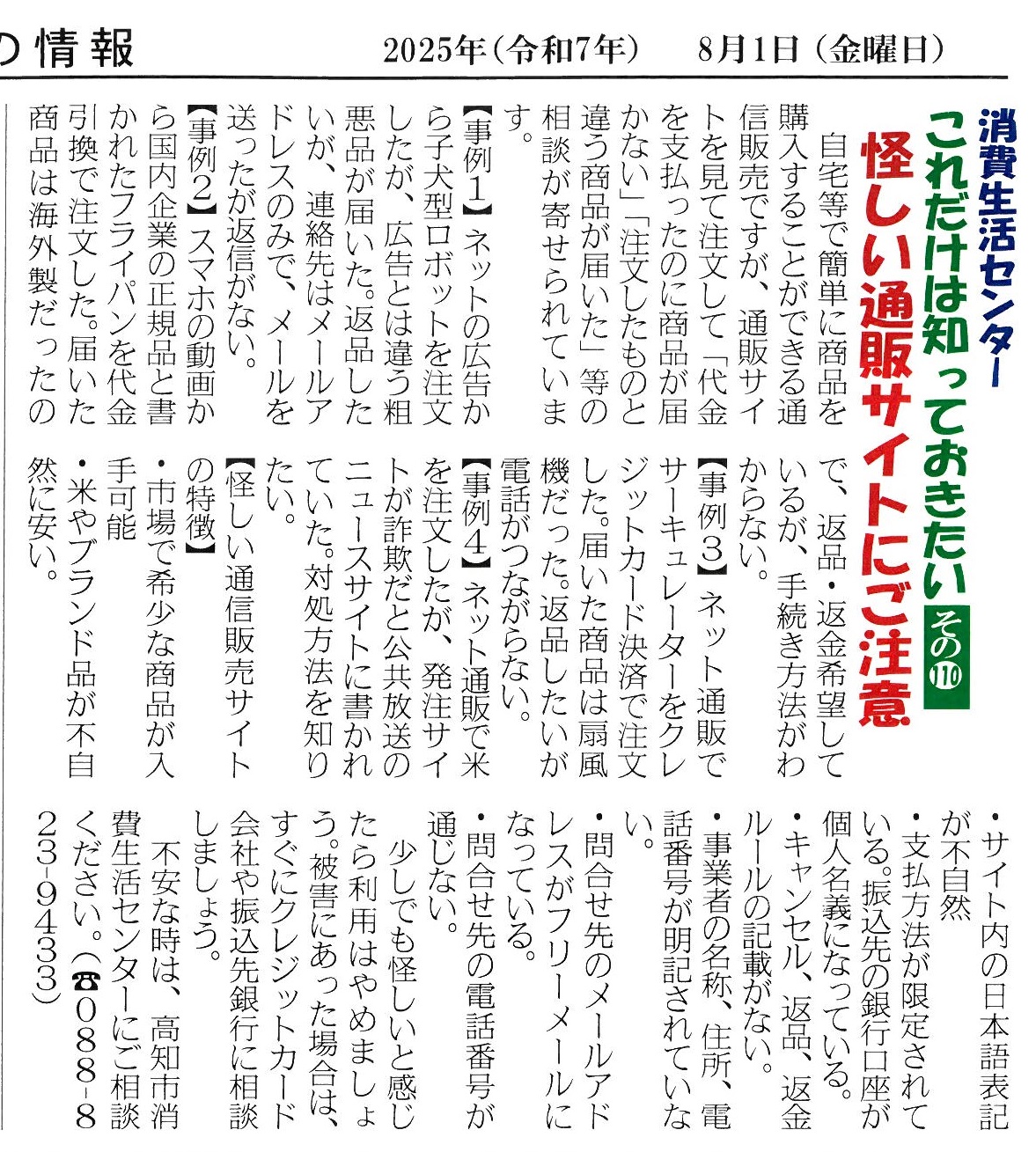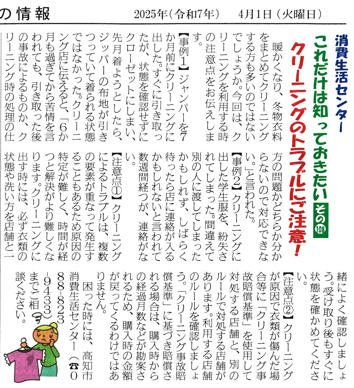 暮らしの情報(タウン誌)に掲載した消費生活に関する情報を紹介します。(同誌に承諾を得ています。)