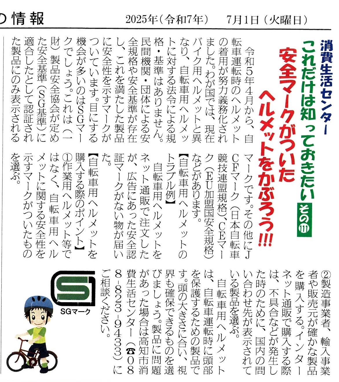 〇安全マークがついたヘルメットをかぶろう!!! 令和7年7月号