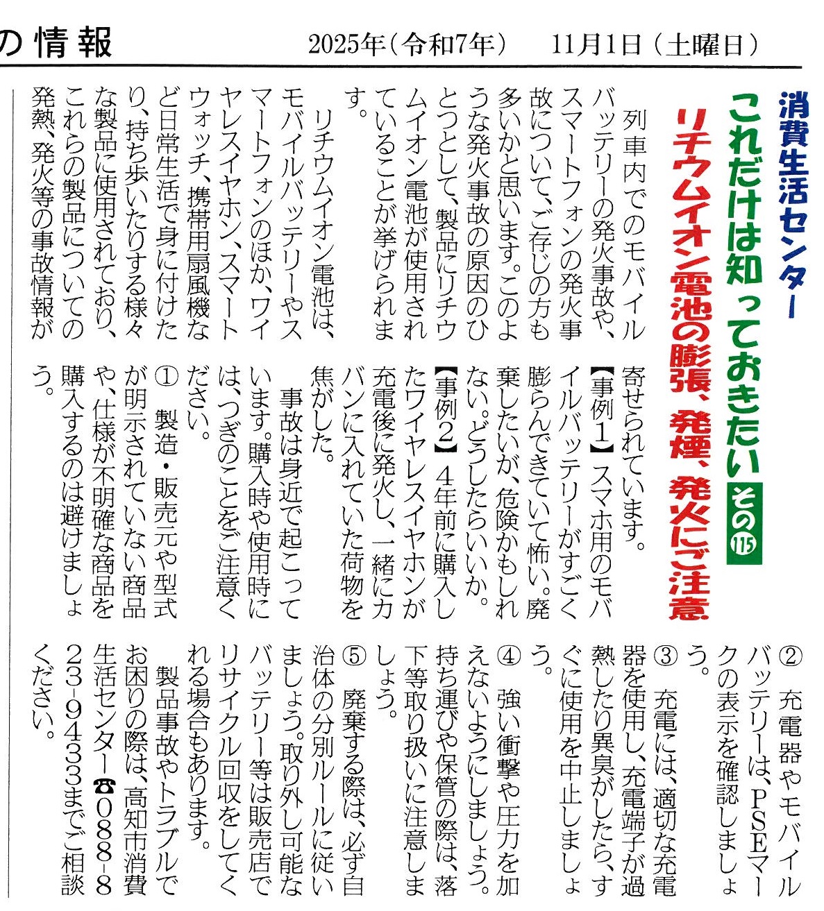 〇リチウムイオン電池の膨張、発煙、発火にご注意 令和7年11月号
