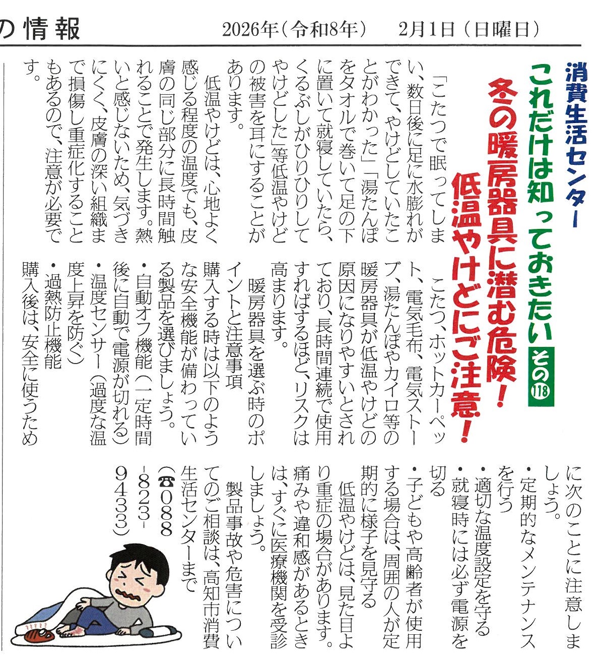 〇冬の暖房器具に潜む危険!低温やけどにご注意! 令和8年2月号